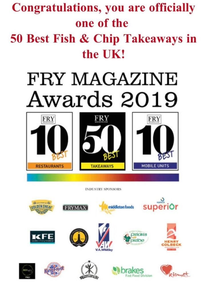 We were proud to have been named one of the Top 50 Fish and Chip takeaways in the UK.